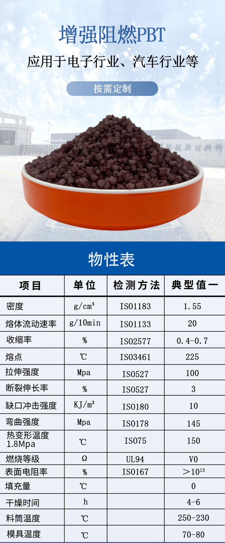 | 熔體流動(dòng)速率 | g/10min | ISO1133 | 20 |